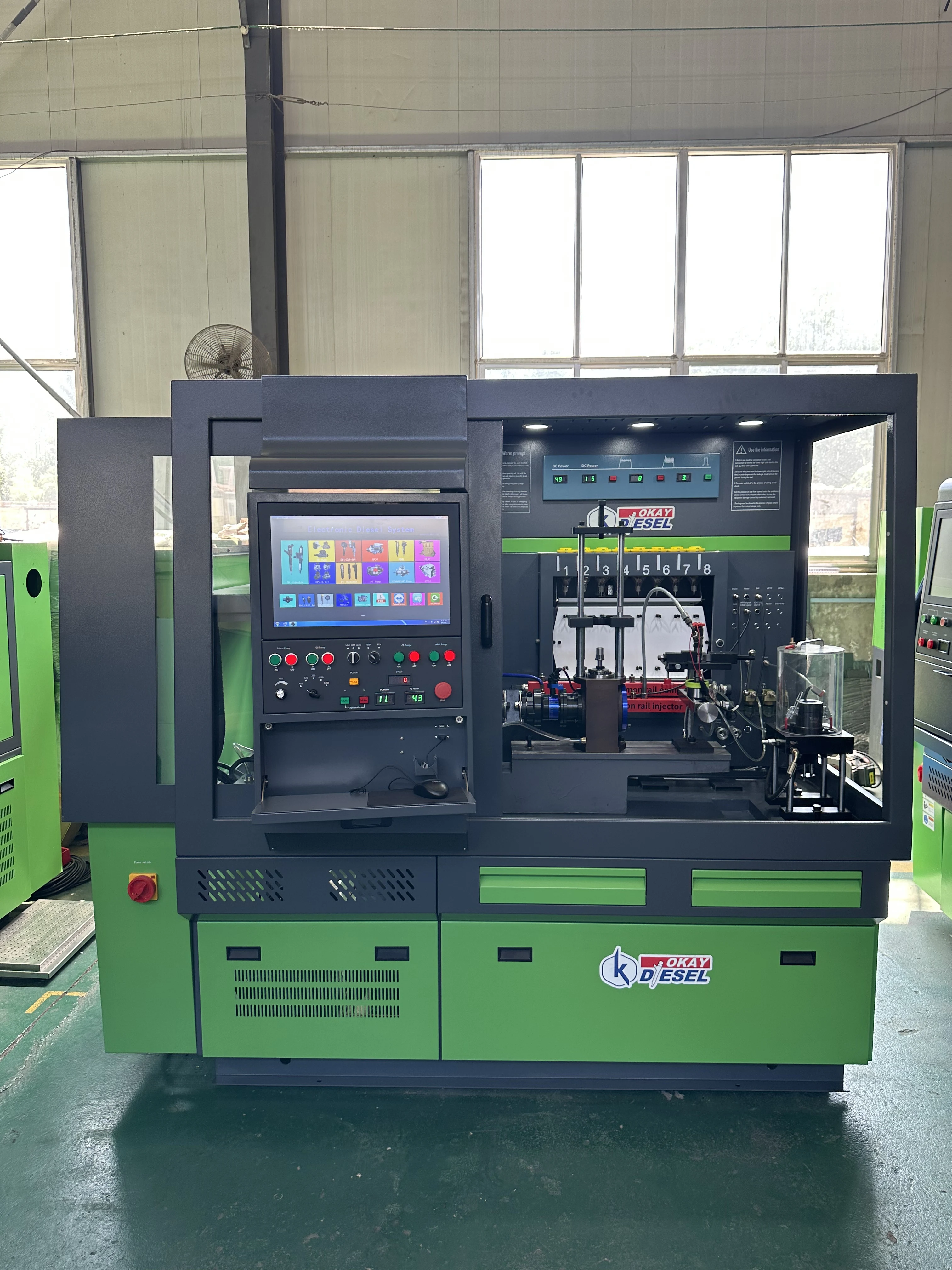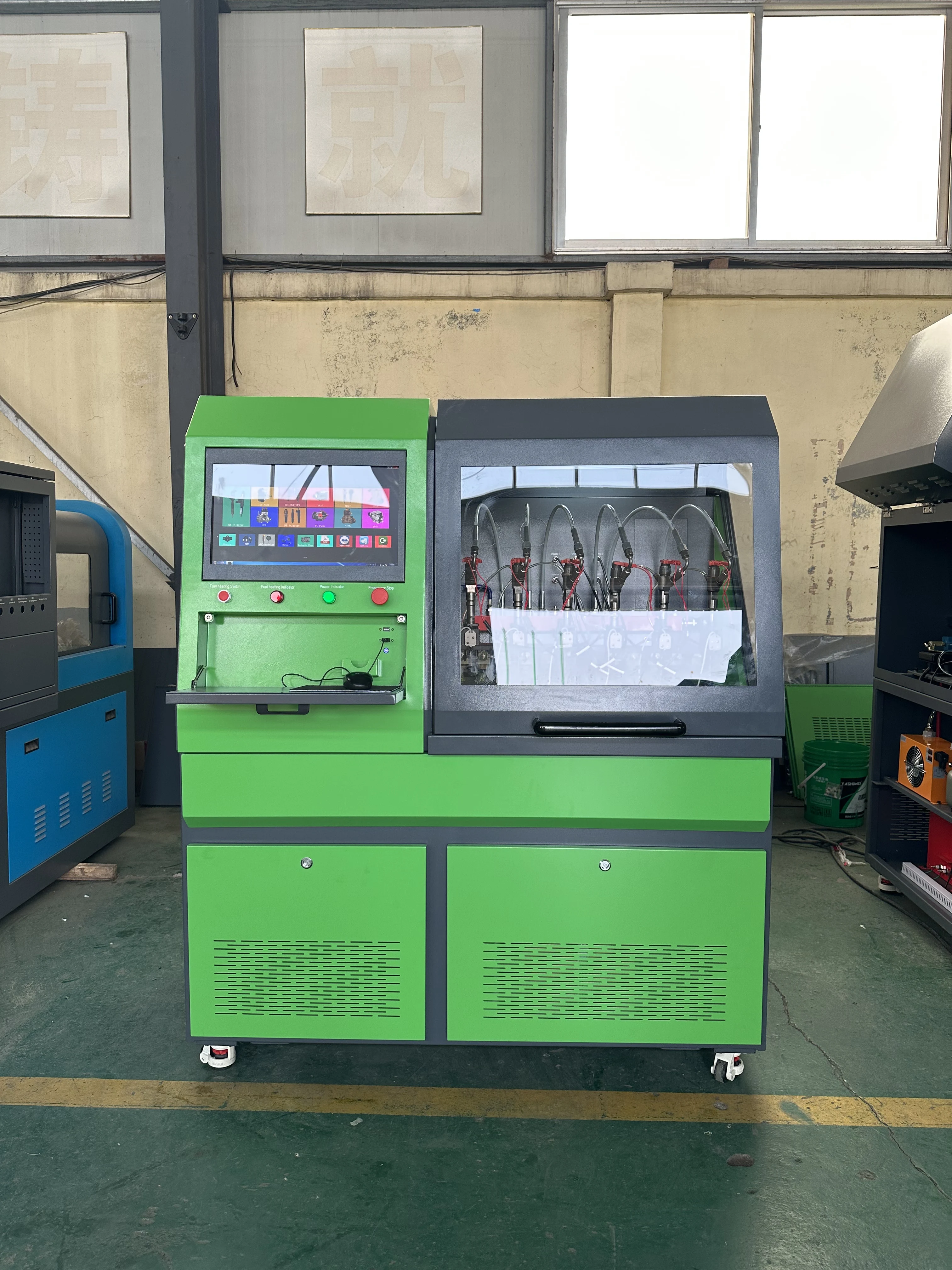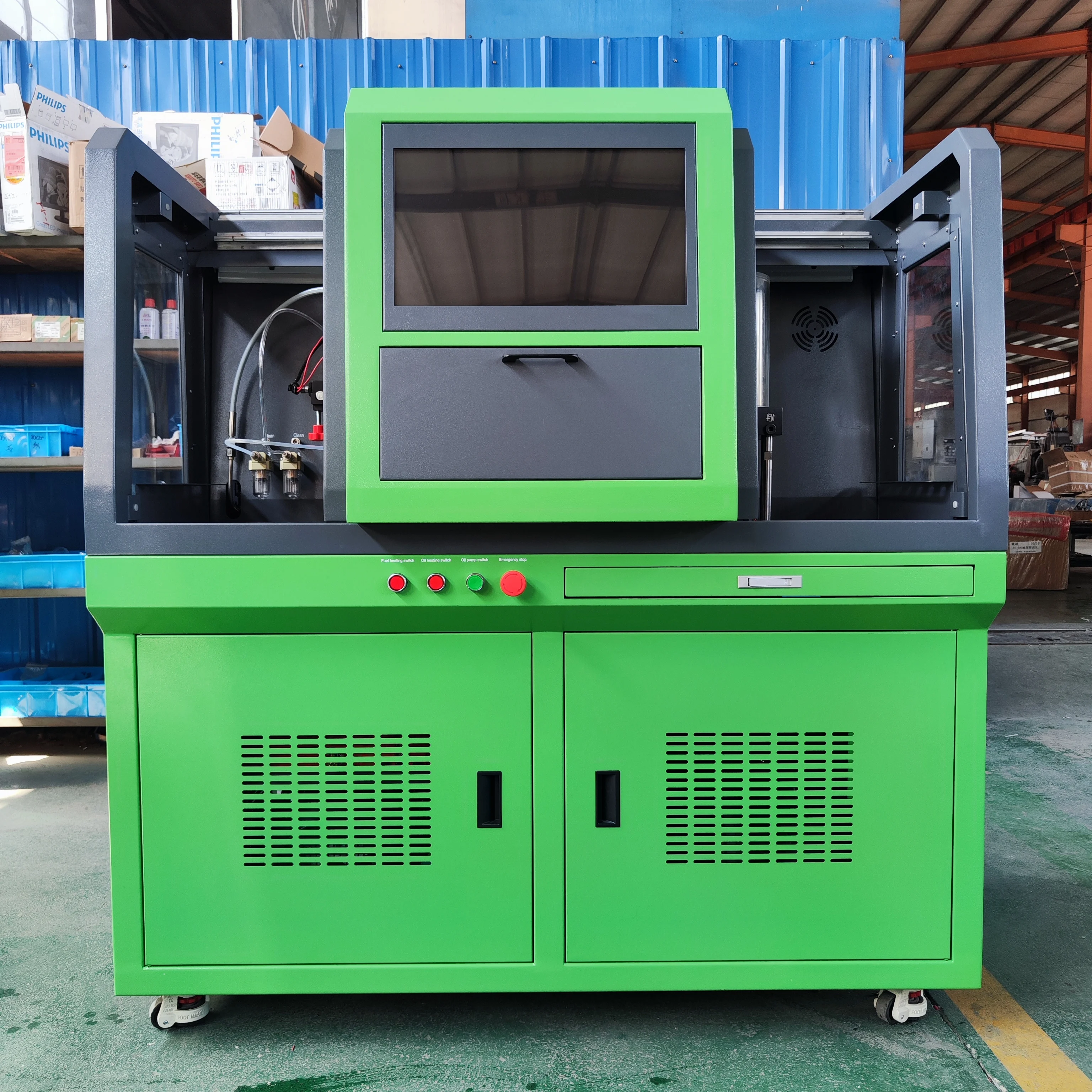 Professional test bench for diesel engine components, supporting CRI, CRP, EUI, EUP, HEUI, HEUP systems. Ensures accurate performance testing for export-quality diesel parts.