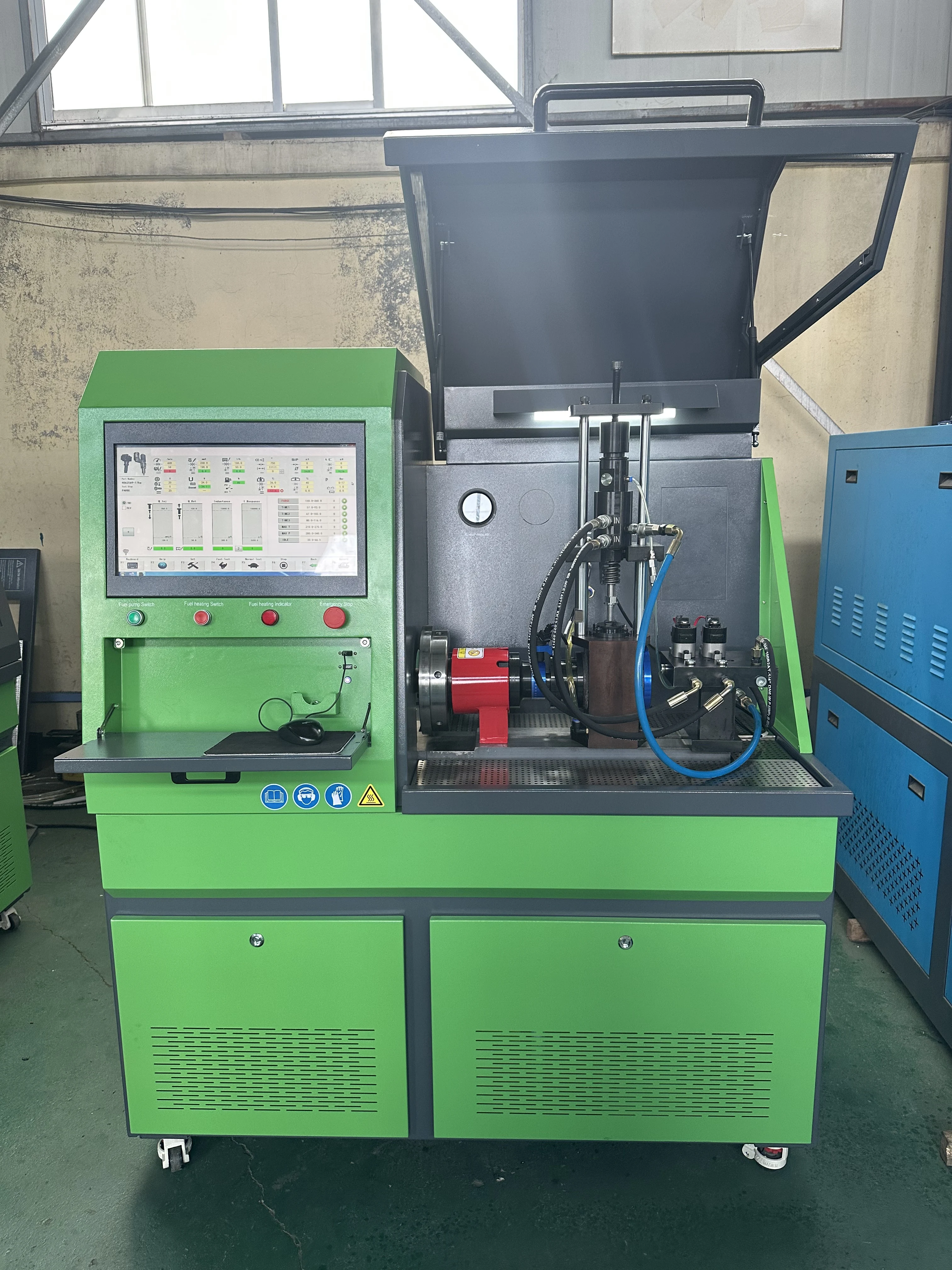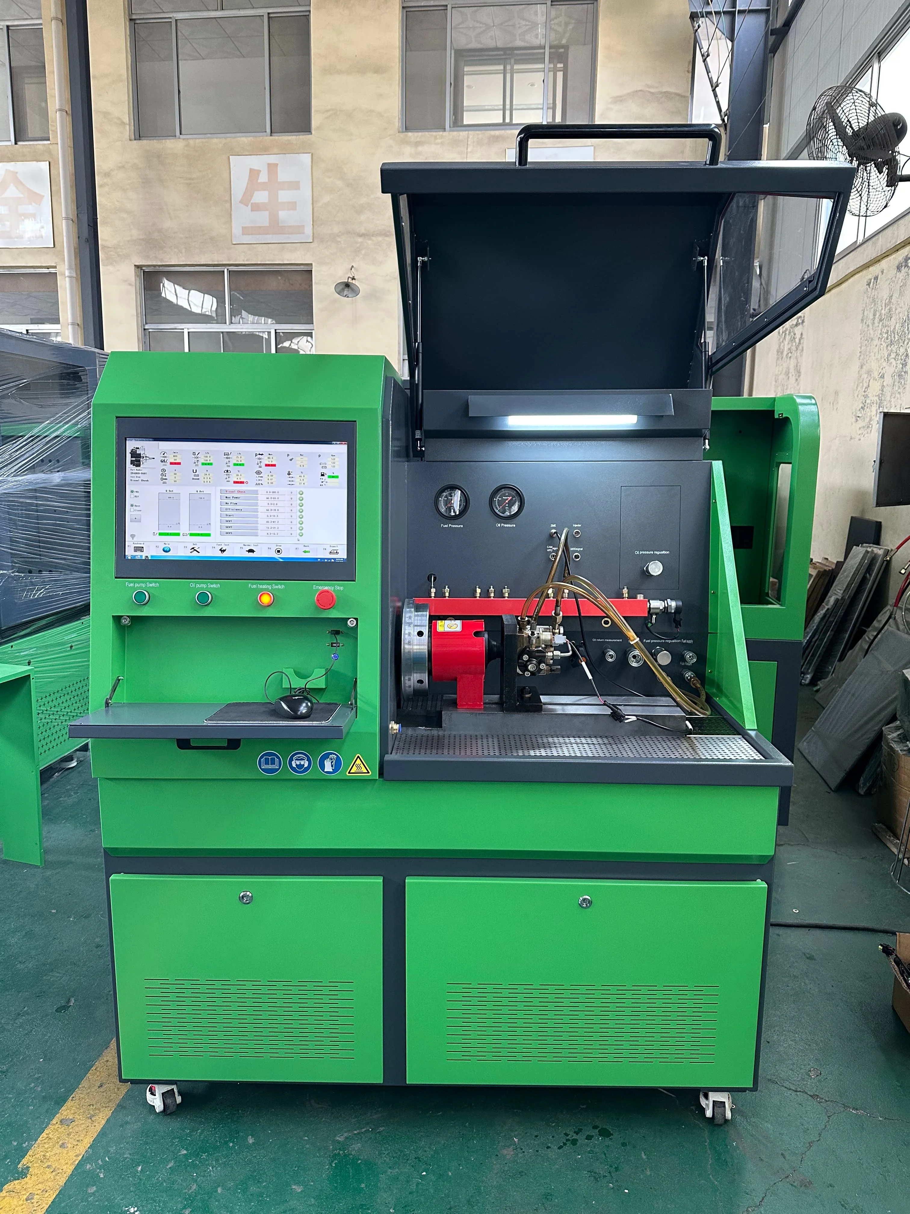 Professional test bench for diesel engine components, compatible with CRI, CRP, EUI, EUP, HEUI, HEUP systems. Ensures accurate performance testing for export-quality diesel parts.