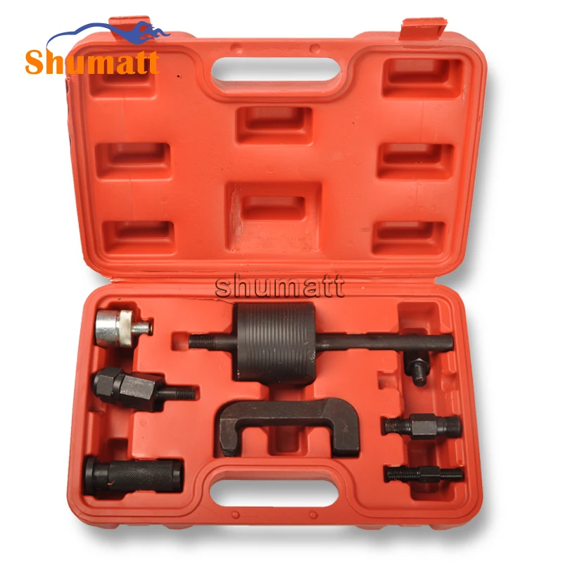 A 11-piece common rail diesel injector dismounting tool set, designed for secure clamping and efficient removal of injectors during maintenance and repair work.