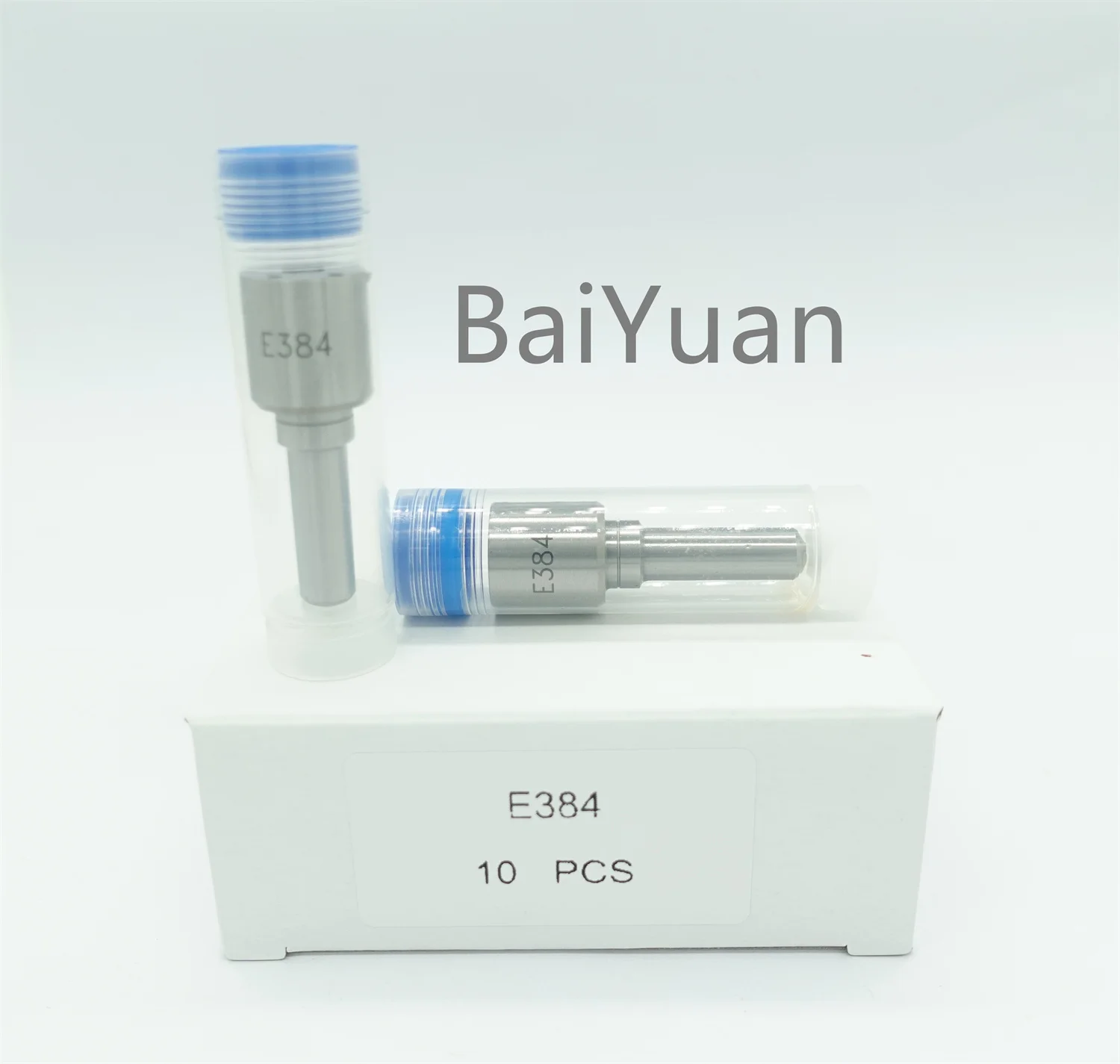 High quality common rail diesel fuel nozzle with part number E384, designed for reliable performance. Offered by Baiyuan/OEM, ensuring original-equivalent quality and a six-month guarantee.