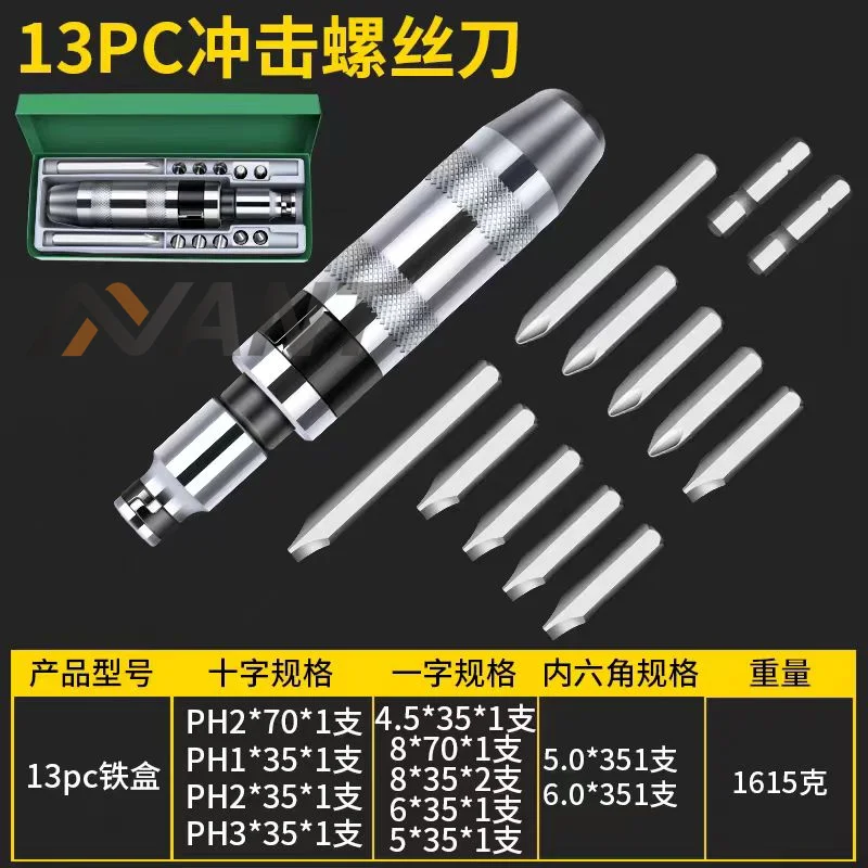 | Core Features | 1. High-impact force for rusted/frozen fasteners 2. Ergonomic non-slip grip 3. Durable chrome-vanadium steel construction 4. Reversible rotation (clockwise/counterclockwise) 5. Compact design for tight spaces 6. Quick-bit release system 7. Heat-treated tip for wear resistance 8. Compatible with standard screwdriver bits 9. Shock-absorbing handle 10. Lightweight (1.2kg) for extended use |